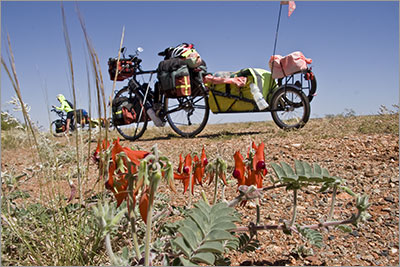 - Have you had any problems with the bikes? Other than general wear and tear we had no significant problems with our bikes. Being an unsupported ride across a lot of remote country we did carry 7kg of spares and tools with us. This allowed us to change one front and rear derailleur and service the bikes at regular intervals. In Perth we changed all the chain rings and rear sprockets which we purchased before leaving Canberra and then had posted to us once we knew where we were staying. We replaced two back rims and one front rim after discovering cracks around the spoke nipples, in this regard we are trying to take this matter up with the rim manufacturer.