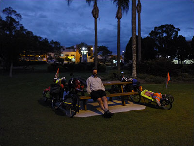 Once we joined the Pacific Highway the run into Taree was mostly downhill along a nice wide shoulder. Just outside Taree we stopped at the Twilight Caravan Park and purchased a shower so we were nice and fresh for our bus trip later in the evening.