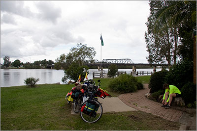 We are convinced our GPS is developing a wicked personality. After leaving the highway and turning into Nambucca Heads we decided to ignore its advice in preference of following a boardwalk along the river. As we returned to the GPS’s preferred route it first took us along ‘Back Street’ a very steep hill before sending us along ‘Short Street’, which turned out to be an unrideable hill. Both routes had very easy rideable alternatives so we are beginning to suspect that the GPS will get us back if we ignore it.