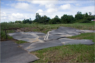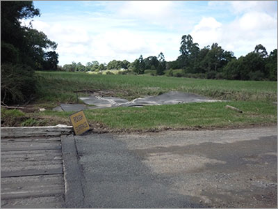 As we entered Bowraville from Nambucca we crossed a low-lying bridge with clear evidence of the recent flooding. There were piles of tree branches that had washed down stream beside the road and temporary railings in place across the bridge. However, a little downstream from the bridge was the road surface that had been clearly floated off the road base by the power of the floods. It will be interesting to see what other damage we see as we move further north into the flood-damaged areas.