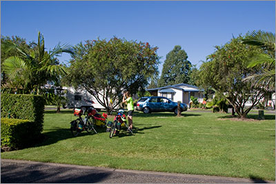 We arrived at Grafton at lunchtime and pulled into the park next to the information centre. It was quite a warm day and the spray from the fountain, shade and the green grass gave us a pleasant respite from the heat. After making some inquiries at the information centre we bought a couple of toasted sandwiches from McDonalds to supplement our fruit for lunch. Then it was off to the Gateway Village to set up camp for the night.