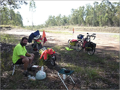 We knew we wouldn’t be able to do that distance in one day. And at first glance we thought there was nowhere to stop halfway, so we were leaning towards Option 1 even though it meant dealing with the dreaded Pacific Highway. Then we discovered in Camps 4 that the General Store at Whiporie (half way between Grafton and Casino) allows you to camp on the block of land next door to the shop. So we ummed and ahhed and decided to take the advice of the locals and head for Casino.