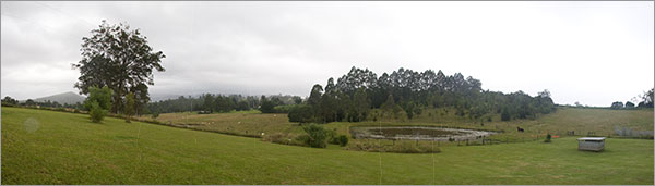 By the time we left Wadeville for Murwillumbah, (about 10.30) it was raining heavily enough and cold enough for us to require our raincoats. There were a couple of steep hills soon after we left and climbing these warmed us so much that we stopped to take our raincoats off even though it was still raining very heavily. Soon after we did though, the road warning signs indicated we were in for a good downhill run so we stopped and put our coats on again as we knew it would be cool.