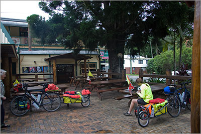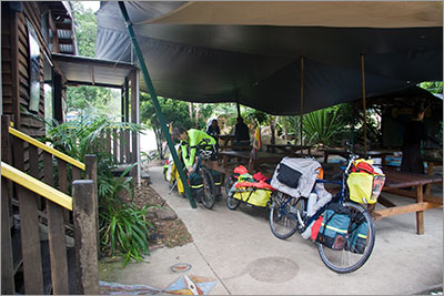 Today was a hard day, not distance wise, but because the road was so rough it was hard to keep our momentum going. It felt like we would hit a hole in the road with the front wheel push the back wheel through but then be dragged back as the trailer wheel followed through. It was good to do the last 20km from Murwillumbah as it was very smooth and fast riding, but we were very glad to get to bed and slept extremely soundly.
