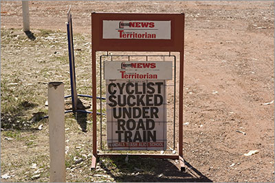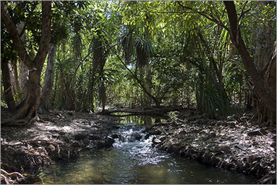 The first 30km today was over a very rough road and by the time we reached our destination for morning tea we both had rather sore bums. We have been suspecting for a while that the chamois in our cycling niks has been wearing out so Denise donned two pairs to see if extra padding would solve the problem. She reported good results and decided to look for some new niks when she got to Darwin. I had already placed a mail order for new niks before we left Katherine so hopefully they should be there when we return later in the week.