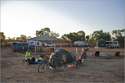 We must have looked hot as a couple from one of the caravans came over with an offer of ice for our drink bottles, which was very much appreciated. At the moment a fridge is the one item we really miss and I suspect if there was a small fridge on the market suitable for pushbike touring in remote areas we probably would be ordering one.