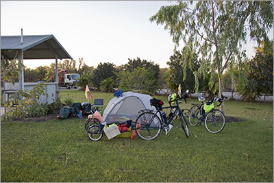 Doon Doon Roadhouse is only open between 6am and 6pm so dinner was ordered at 5.15 and we ate at 5.30. Doon Doon is a nice place to stay – the best roadhouse camp spot we have experienced so far. We pitched our tent for the first time without the fly so we will see if we sleep cooler and easier tonight.