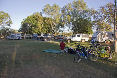 Because it was still warm, we decided to pitch the tent without the fly, but by the time we returned from having dinner at the roadhouse, dew had fallen and our tent was damp, so we hurriedly put the fly on. We haven’t had dew since we left the east coast in Queensland.