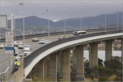Our time in the city was quite a social one with a number of interested enquiries about where we were from and going to. Down at the waterfront one such conversation led to an offer of accommodation which if we had not just paid a deposit for our stay tonight we would have most likely accepted. It brought back memories of my first time cycling in Tasmania in 1978 when we received many such friendly invitations. Through this chance encounter we were able to get some excellent directions on how to get across the Tasman Bridge, which was the problem we were trying to solve as we pulled up at the wharf. In 1978 there had been a ferry service but we found this had been discontinued long ago.
