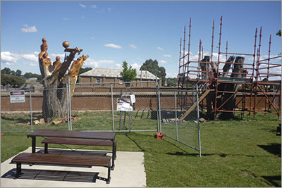 New sculptures under construction in the park near the convict built bridge in Campbell Town