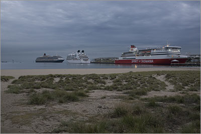 We disembarked from the Spirit of Tasmania and joined the Twaotts on the Esplanade for a cup of tea whilst watching the Sea Odyssey and the Queen Victoria dock behind the Spirit.
