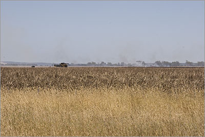 Not 5km down the road we noticed smoke starting to rise into the sky from one of the fields beside us. It appeared that one of the headers or trucks involved in the harvesting had started a fire. A number of utes passed us at speed and drove towards the smoke but none seemed to be carrying fire-fighting equipment. When we lived in rural NSW many of the farmers at this time of the year would be carrying a small fire fighting unit on their utes and trucks. This is something we have not seen in WA or SA but nevertheless somehow the fire on our left was brought under control. A little later we noticed a small crop dusting type aircraft flying towards the fire and we wondered if it had been sent to water bomb the fire for good measure.