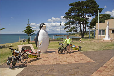 Today we traveled beside what must be one of the most picturesque pieces of coastline in Australia. Between Ulverstone and Penguin the Old Bass Highway hugs the coast and for much of the way it is only separated from the sea by the width of a single railway track. The railway is so close to the sea that in some places the waves must break across the tracks and possibly the road during a big storm.
