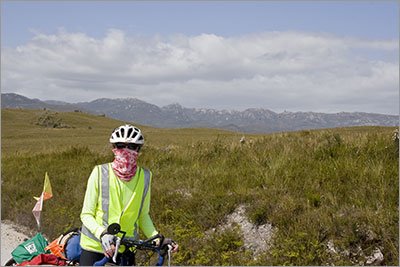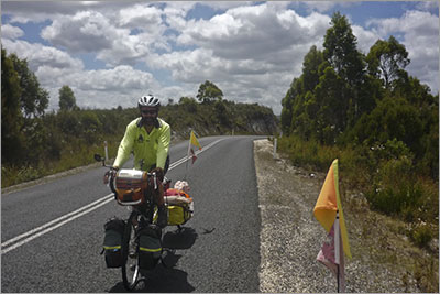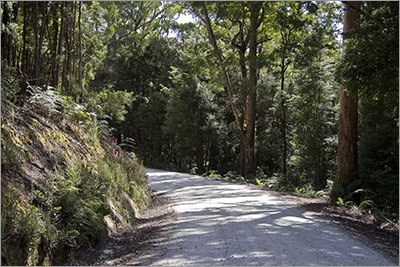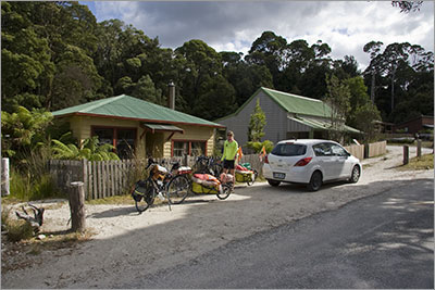 A much nicer day today weather wise. We had a downhill run from Waratah’s near 650m to Corinna’s sea level. Even so, we still had some quite steep climbs in between, particularly between Luina and Savage River. There was very little traffic on the road and we only saw three semi-trailers between Waratah and Savage River. On the gravel road between Savage River and Corinna, five cars and a motorbike passed us. At one point we had to stop to let a Tiger snake cross the road. It was the largest live snake we have seen on our trip so far.