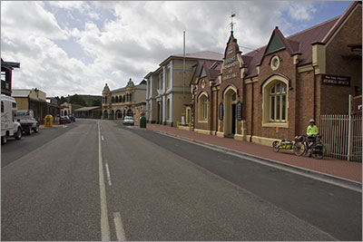 Riding along the bitumen we thought we could hear the sea and when we reached the turnoff to Granville Harbour we found we had a good view of the ocean. The rest of the ride into Zeehan was up and down with some pretty big hills. The hard work in riding these was tempered by the magnificent scenery, especially that of Mt Heemskirk.