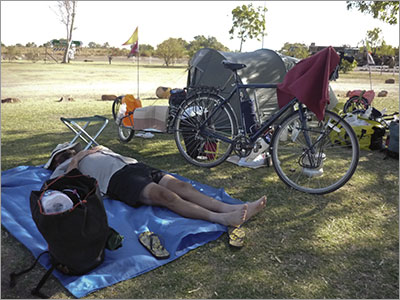 We spent the rest of the afternoon lounging about in the shade near our tent before going to the roadhouse for dinner with Beryl and Brian, a couple travelling north in their caravan. They own a dairy farm and it was interesting to hear how they are managing retirement without selling the farm.