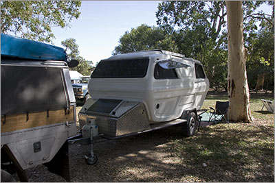 As the three of us sat and talked at the Bluewater rest area we all noticed what looked like a new style of camper van pull in. My first thought was that it was a bigger copy of the Ultimate camper trailer, however we discovered later that it was a ‘Murrumba Star’, which was built, in the early 1960’s. Its owners, Hans and Anneke, had taken two years to restore the van and had certainly done a great job. We recorded a short interview with them to add to our collection of stories we are collecting on our trip.