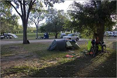 Listening to local ABC radio this morning we were amused to hear the presenter talking about how the cold snap being experienced in the local region may require commuters to use the heaters in their cars this morning. Before breakfast I rode to the local Brumby’s bakery to get some pizza rolls and apple turnovers for lunch today and found the temperature very comfortable in just shorts and polo shirt. At home in Canberra we suspect there was a frost but here we are still sleeping with just a sheet to cover us.
