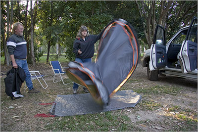 Faye demonstrates how quick and easy it is to pitch their 3 minute tent.