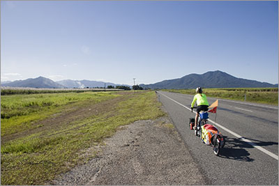 About 10km out of Ingham and just after the 40km to Cardwell sign we came across a sign indicating a steep ascent. Given all the flat riding over the last couple of weeks this was rather novel. An ascent usually means there will be a descent. Flat may be good but you have to pedal all the time, unless you take turns to draft each other, so after so much flat a hill was a weird form of relief for us and we looked forward to the climb.