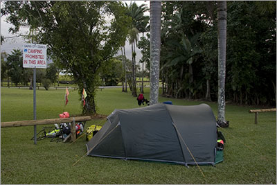Camping on the correct side of the sign at Babinda Rotary Park.