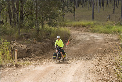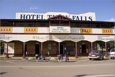 After the advice we had from the Ambo’s in Atherton yesterday we decided to take the dirt road, which followed an abandoned railway between Herberton and Ravenshoe. It started off bitumen, turned to smooth gravel and then became very rough. Obviously the Ambulance had turned around before the rough bit. But even though it was rough in parts and we had to push the bikes through one or two creek crossings we were rewarded with seeing what we believe were a flock of 50 or 60 Brolgas. When we enquired at the Ravenshoe Visitor Centre we were told that it was possible to see Brolga so we have captioned our photos accordingly. Overall it was a pleasant ride along the dirt road with only three cars passing us along the way. A quiet alternative to the highway.
