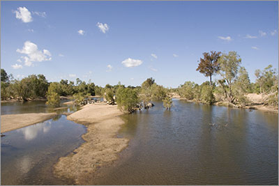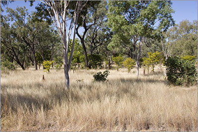 We saw lots of red tailed black cockatoos and a dingo this morning. Many of the trees and bushes are flowering so there are a lot of other birds around as well. We stopped for morning tea under a tree that before we pulled up was full of red tailed black cockatoos. We were interested to see what they were eating. The eucalypt had just finished flowering and they were eating the immature seeds inside the green gum nuts. The empty gum nuts on the ground looked like they had been simply peeled open with a ring pull like a can of sardines. When we tried to open one we found that we had to use the saw blade on our leatherman knife to cut through the gum nut’s outer casing. This gave us a good appreciation for the power behind the cockatoos’ beaks. After testing the inside for palatability we decided that we would not rely on this form of bush food for any future meal as well as being damned hard to get at it was very bland.