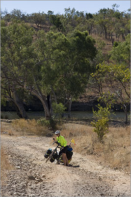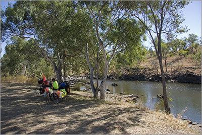 We really enjoyed today. The scenery was lovely, going over the Newcastle Range was spectacular. We started at 8.00am and the road was very quiet for the first hour and then got a little busier – I think everyone had just woken up! All day the traffic was really not that busy and we only saw 2 road trains – perhaps because it is Sunday. The majority of the traffic that passed us was towing a caravan and it is very clear that the grey nomads are very active out here.