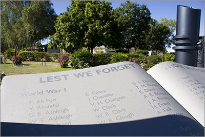 Roll of Honour. Croydon ANZAC Memorial Park.