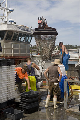 This group was boxing what looked like pilchards on one of the Lakes Entrance wharfs - 100 minutes later they were still at it.