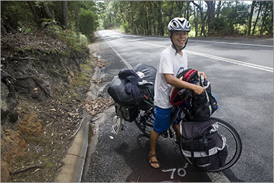 Yen, from Taiwan, is riding from Brisbane to Sydney. Being ahead of schedule he has just kept going!