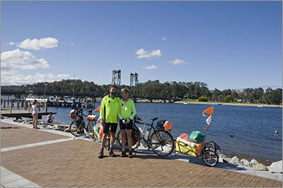 Being so close to Canberra we began to realise that our journey is indeed coming to an end. We even bought a Canberra Times two days ago. We have very much enjoyed our journey but living out of three small bags is starting to become a little tiresome. The tent rarely goes up these days. A colleague sent us a text today enquiring about our whereabouts. We replied – “In Batemans Bay enroute to Sydney and Home. Looking forward to having more than 2 shirts to choose from.” His reply “Nice will see you soon then. Who needs shirts, naked is the new black, haha.” Our reply “ ;-) What a picture you paint! D & M in new black on bicycles.”