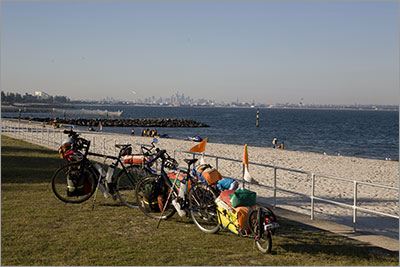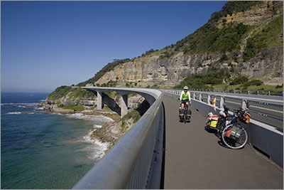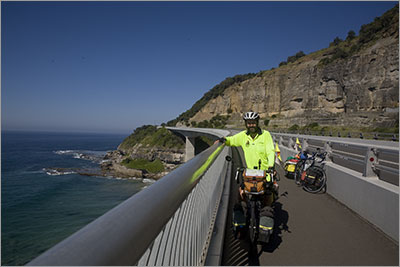The route we took today must be the most scenic ride /drive into any of the capital cities in Australia. From Wollongong we followed the bike path along the coast to Thirroul where we returned to the road to Stanwell Park. The highlight along this section of road was the views from the ‘new’ Sea Cliff Bridge which replaces 1km of the old road that was prone to rock falls and landslips. At Stanwell Park the road climbs to the top of the escarpment and then winds its way through the Royal National Park. Rather than returning to the Princes Highway we chose to ride to Bundeena. A ferry connects Bundeena with Cronulla where we linked up with the bike path that follows the edge of Botany Bay to Ramsgate.