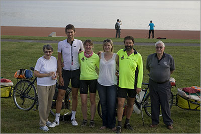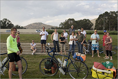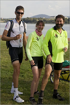 On the shores of Lake Burley Griffin at the bottom of ANZAC Parade. The High Court, Parliament House and the National Library are in the background. Although this was the ‘official’ end of our journey we still had 15km to ride home. Andrew led the way (we suspect he has never ridden so slowly) and it was nice to draft him up Northbourne Avenue.