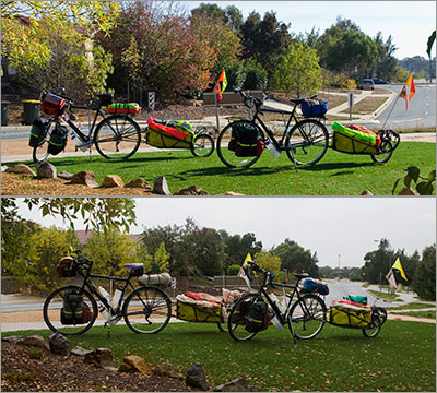 How some of our bags faded after 12 months in the sun. Top - the day we left (sunny). Bottom - the day after we got home (rainy).