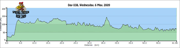 Not far from Tewantin there is a big red road sign warning of a steep 1.2 km climb. This sign needs to be taken seriously, check out the elevation profile. We believe this is the hill that they use in the cycle leg for the Noosa Triathlon. A game cyclist could get a lot of speed coming back off this hill. It is hills like this that make us pleased the elevation profiles are not available to us before we start each day. In some ways it is best to be surprised by such discoveries.
