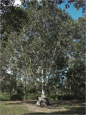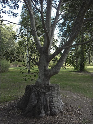 Tree growing in an old eucalypt stump. Picnic area on Burrum River, Burrum. Between Torbanlea and Howard.