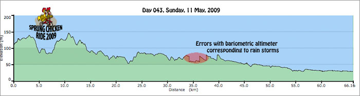 We took the opportunity to have an early lunch and after a short chat to a couple who arrived to stay the night in their van we headed off to only stop less than two minutes down the road to put our rain coats back on. We rode for about 30 minutes in very heavy rain before it eased. Watch the video.
