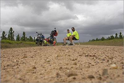 Just before midday and as we were proceeding through some road works it started to rain lightly. A road sign indicated we were 1km from a rest area so we picked up pace with the hope there was a shelter where we could get out of the rain and put our cameras into dry sacks.