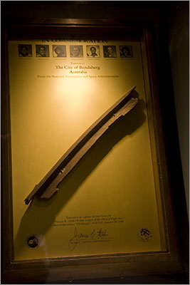 Section of Hinkler's 1912 glider recovered from the 1986 Challenger disaster. Hinkler Hall of Aviation, Bundaberg.