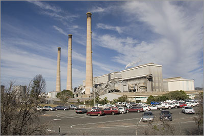 NRG Power Station, Gladstone. Queensland's largest power station uses nearly 4 million tonnes of coal a year and sells most of its electricity to the smelters, the balance contributres to 15% of Queensland's electricity requirements.