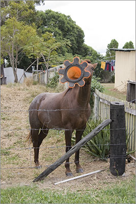 We stopped at Mount Larcom for morning tea (chocolate milk). Lunch was at the Marmor Memorial Park where we were entertained by a horse playing with a witch’s hat.