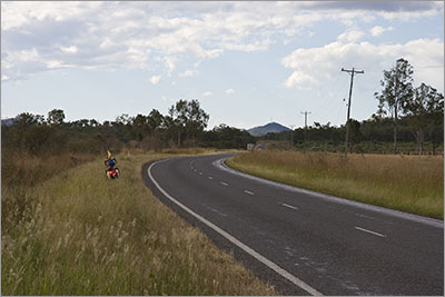 Just after we passed the turn off to St Lawrence we caught up with Bruce again. He had a flat tyre and neither of his two pumps were working so we let him use one of ours. A short time after we got going again it started to sprinkle with rain. In the distance the rain clouds looked much blacker than where we were and we could hear the rumble of thunder. As we got closer to Clairview the road was quite wet. I’d say the time we spent helping Bruce with his flat meant that we missed the majority of the rain.