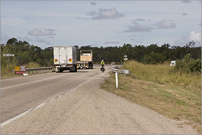 Emu Creek between Proserpine and Bowen. Denise catches up after having to wait for red traffic light at road works.