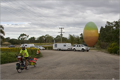 We stopped at the Big Mango, just 5km south of Bowen. Our second big thing since the Big Banana. Personally I think it looks more like a badly painted egg than a mango, see photo. They paid $90k for this. Whatchafink? It was surprising there were no mango products available.