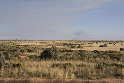 A bushfire south of the Eyre Highway. We were thankful the wind was blowing it south west and away from us.