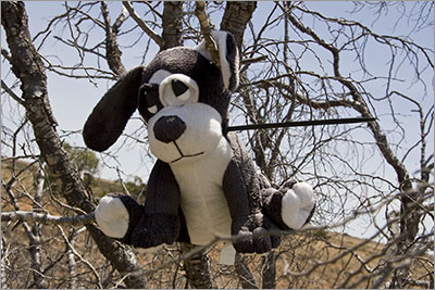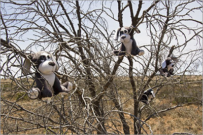 'Roadside art #2' - Dogs in Tree. We noted they looked a little sad and then realised the cable tie around the neck was most likely the cause.