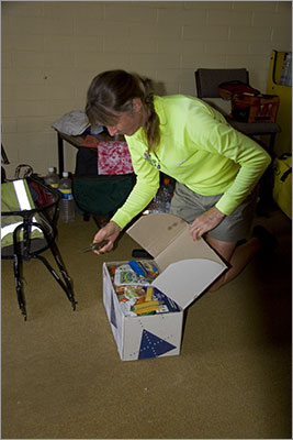 Our ‘cycling refugee pack’. Denise keeps control of the treats as I am told I cannot be trusted.