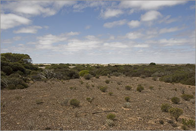 5 km from the Nullarbor Roadhouse. The roadhouse can be seen on the centre horizon.