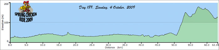 After morning tea we rode for about 30 minutes before stopping for lunch. Shortly after lunch we climbed about 100 metres in a couple of kilometres. It was quite steep – see elevation profile. We did get some good downhill runs though.